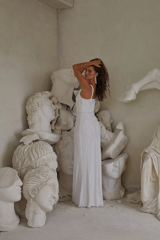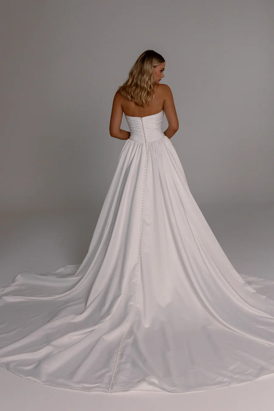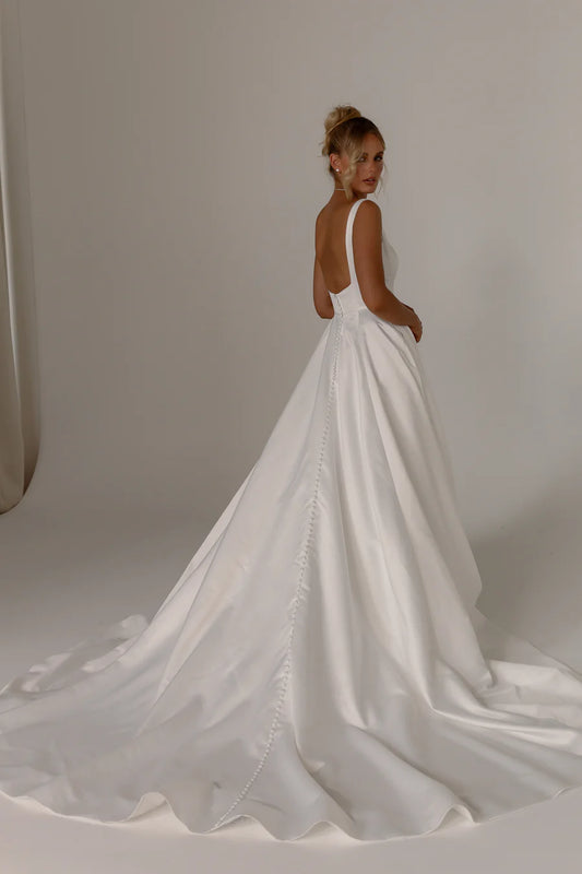 Sophia Crepe Off Shoulder Bridal Gown - Vintage White