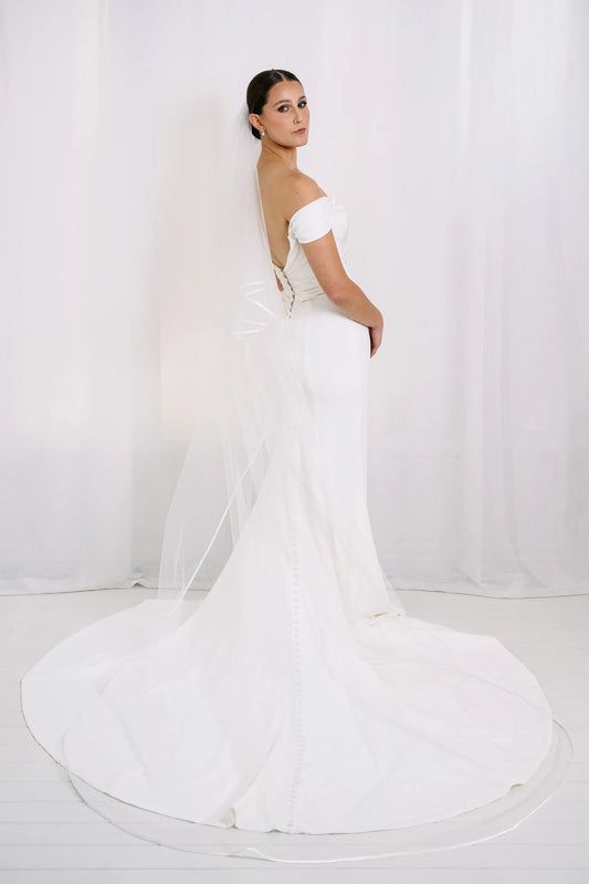 AN6045SE Satin Trimmed Cathedral Length Veil