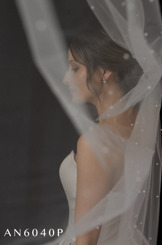 AN6040P Ivory Tulle Pearl Veil