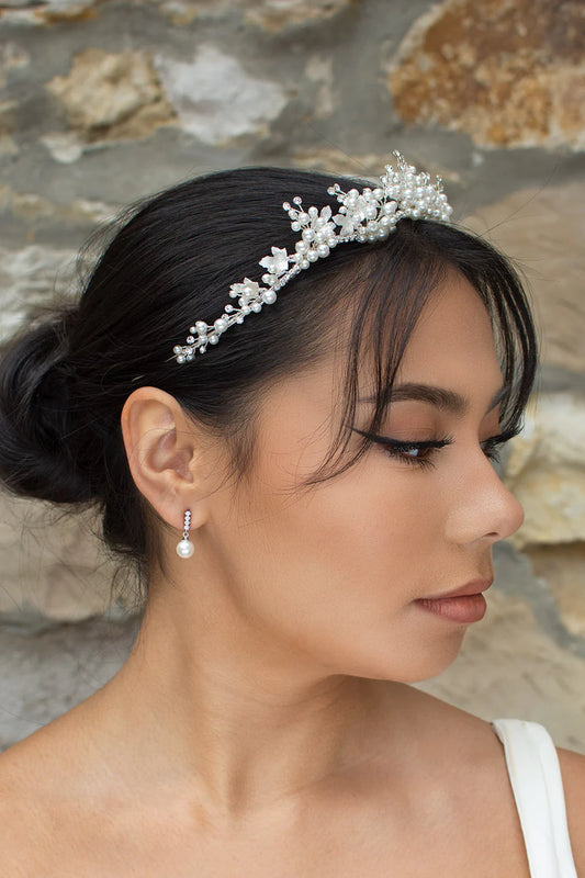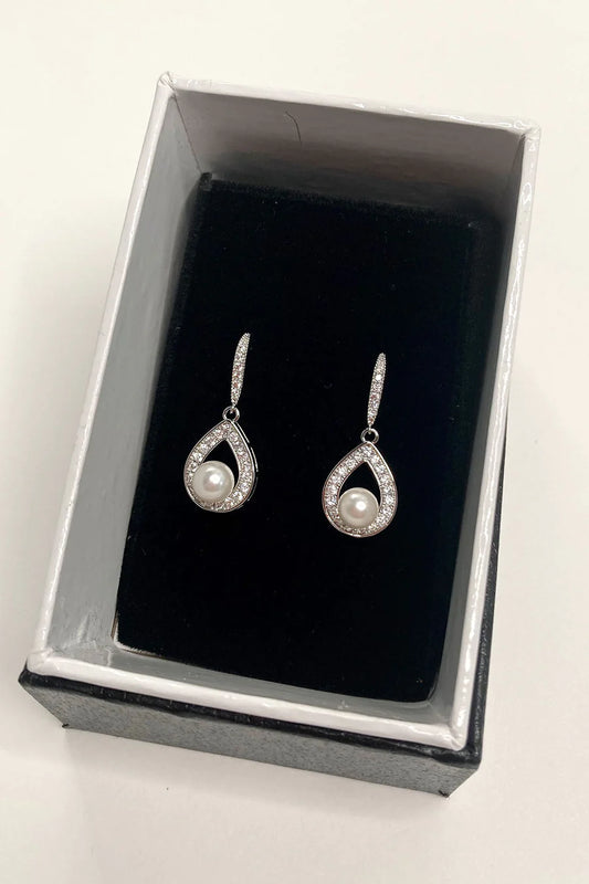 Betty Crystal & Pearl Drop Earring in Rose Gold